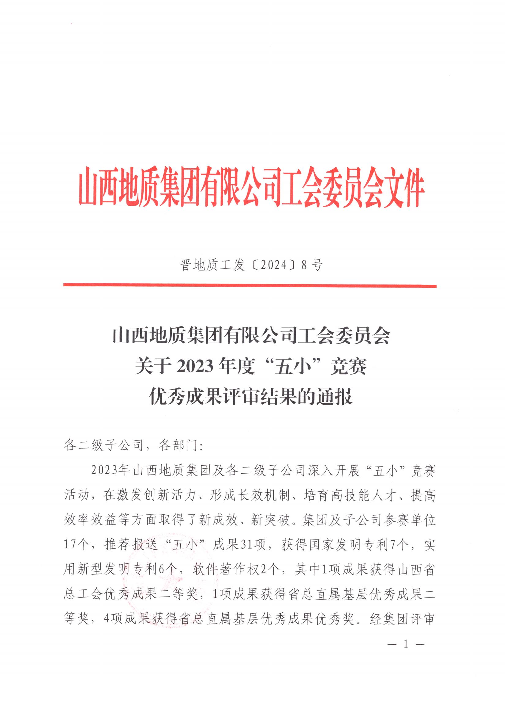 2023年,公司按照集团“五小”竞赛工作安排,为激发公司广大干部职工的劳动热情和创新活力,充分调动广大干部职工的积极性、主动性、创造性,加快建设一流公益地质科技企业,认真开展“五小”竞赛活动,集聚全员智慧,深挖职工创新创效潜能,将“五小”竞赛作为提高职工技能、推动技术进步、提升工作效能、实现节能降耗的重要途径。同时,促使广大职工主动学习新技术、掌握新技能、练就真本领,努力成为行业技术骨干,以劳动和技术成果书写出彩人生,为公司高质量发展积蓄力量!