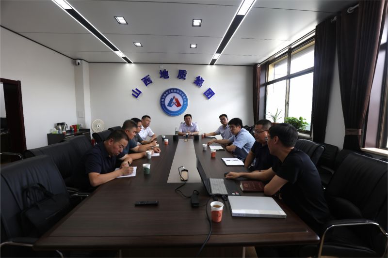 赵政一行查看了办公室、会议室、食堂等办公场所,听取了项目部负责人关于设计孔位、施工单位及施工设备、现场踏勘等情况汇报,详细了解了项目进度、人员配置、工作分工、存在的困难及问题等。与会人员就孔位确定、职责划分、项目推进等方面进行了交流讨论,并提出了意见建议。