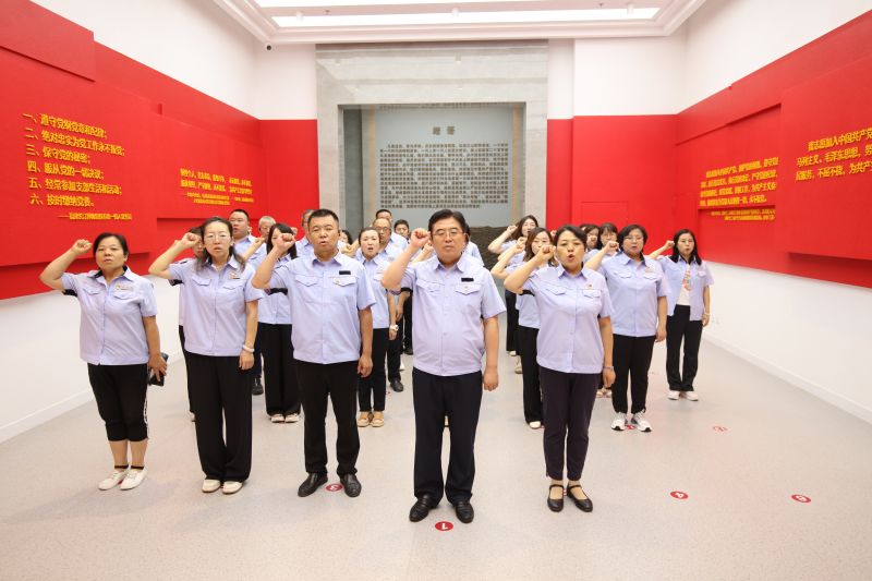 在讲解员的引领和讲解下,党员干部依次参观了“牢记初心使命”大型党风廉政教育主题展和“铁纪生威”专题展。参观中,党员干部认真聆听了讲解员介绍,观看了图片资料、影像资料,重温了党的自我革命历程,回顾了党的十八大以来以习近平同志为核心的党中央推进全面从严治党取得的历史性、开创性成就。展厅中一条条沉重醒目的标语、一个个引人深思的腐败案例、一组组触目惊心的数据、一句句发自肺腑的深刻忏悔,为大家上了一堂生动的警示教育课,为每名党员敲响了警钟、拉响了警报,同时也告诫大家,必须保持清醒头脑,切实筑牢知敬畏、存戒惧、守底线的思想防线。在宣誓厅党员干部共同重温了入党誓词,进一步坚定理想信念,锤炼坚强党性,增强纪律意识,接受了一次深刻的党性教育和精神洗礼。