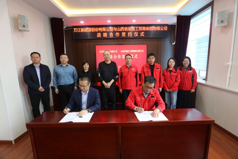11月19日上午10:00,我公司与万江新能源股份有限公司在办公楼三楼会议室召开战略合作签约仪式。公司党委副书记、副董事长、总经理施红政,万江新能源股份有限公司副总裁尹永旺分别代表双方签署战略合作协议。公司党委委员、副总经理安道智,万江新能源股份有限公司总工程师庞文胜等出席签约仪式。