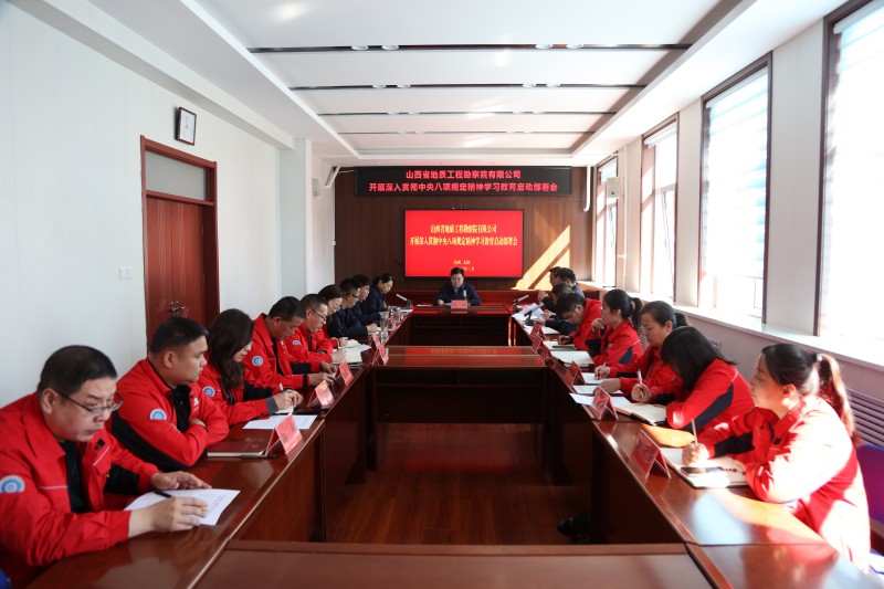 会议以第一议题形式传达学习了习近平总书记关于中央八项规定精神的重要论述,传达学习了《中共中央办公厅关于在全党开展深入贯彻中央八项规定精神学习教育的通知》《中共山西省委办公厅关于在全省开展深入贯彻中央八项规定精神学习教育的通知》《山西省地质勘查局关于开展深入贯彻中央八项规定精神学习教育的工作方案》,对公司深入贯彻中央八项规定精神学习教育工作进行了安排部署。