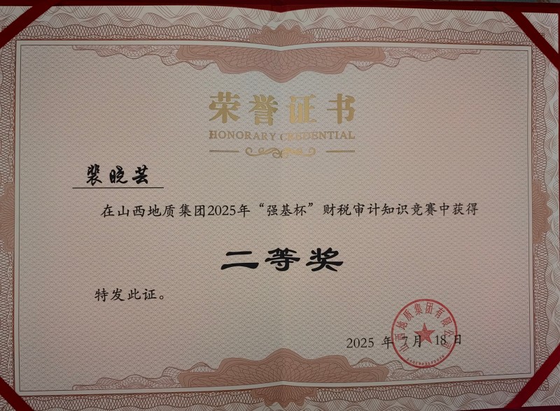 7月15日至18日,我公司派出代表队参加山西地质集团举办的2025年“强基杯”财税审计知识竞赛,代表队成员凭借扎实深厚的专业功底与高效默契的团队协作,历经多轮紧张激烈的比拼,从23支参赛队伍中脱颖而出,成功斩获团队三等奖。