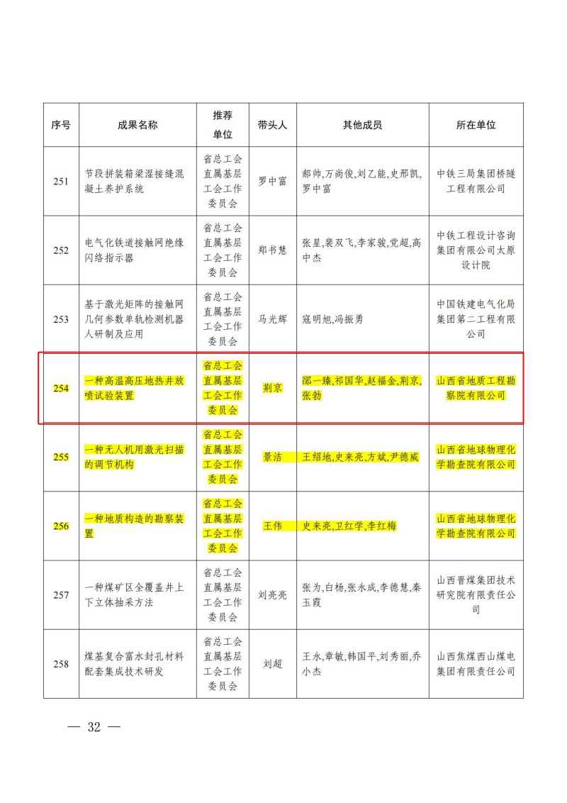 近日,山西省总工会公布了2025年全省“五小”创新大赛优秀成果和先进集体名单。betway平台自主研发的发明专利“一种高温高压地热井放喷实验装置”,荣获创新大赛二等奖。