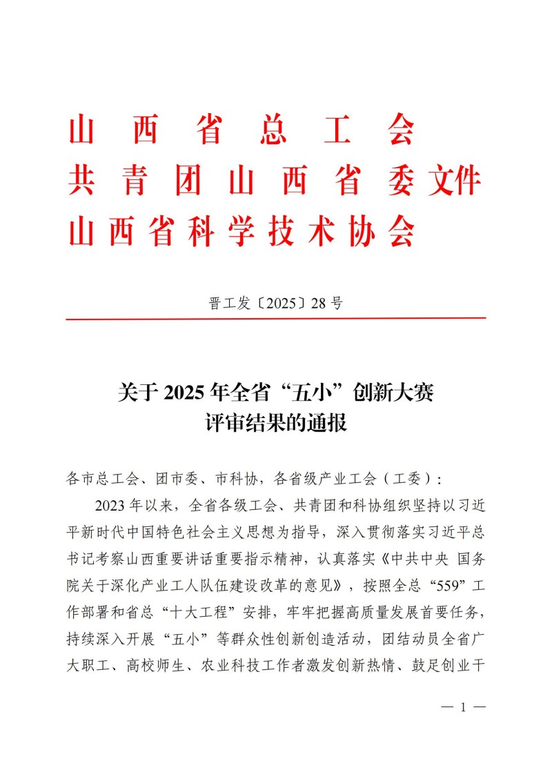 BETWAY(中国)一项发明专利获山西省“五小” 创新大赛优秀成果二等奖